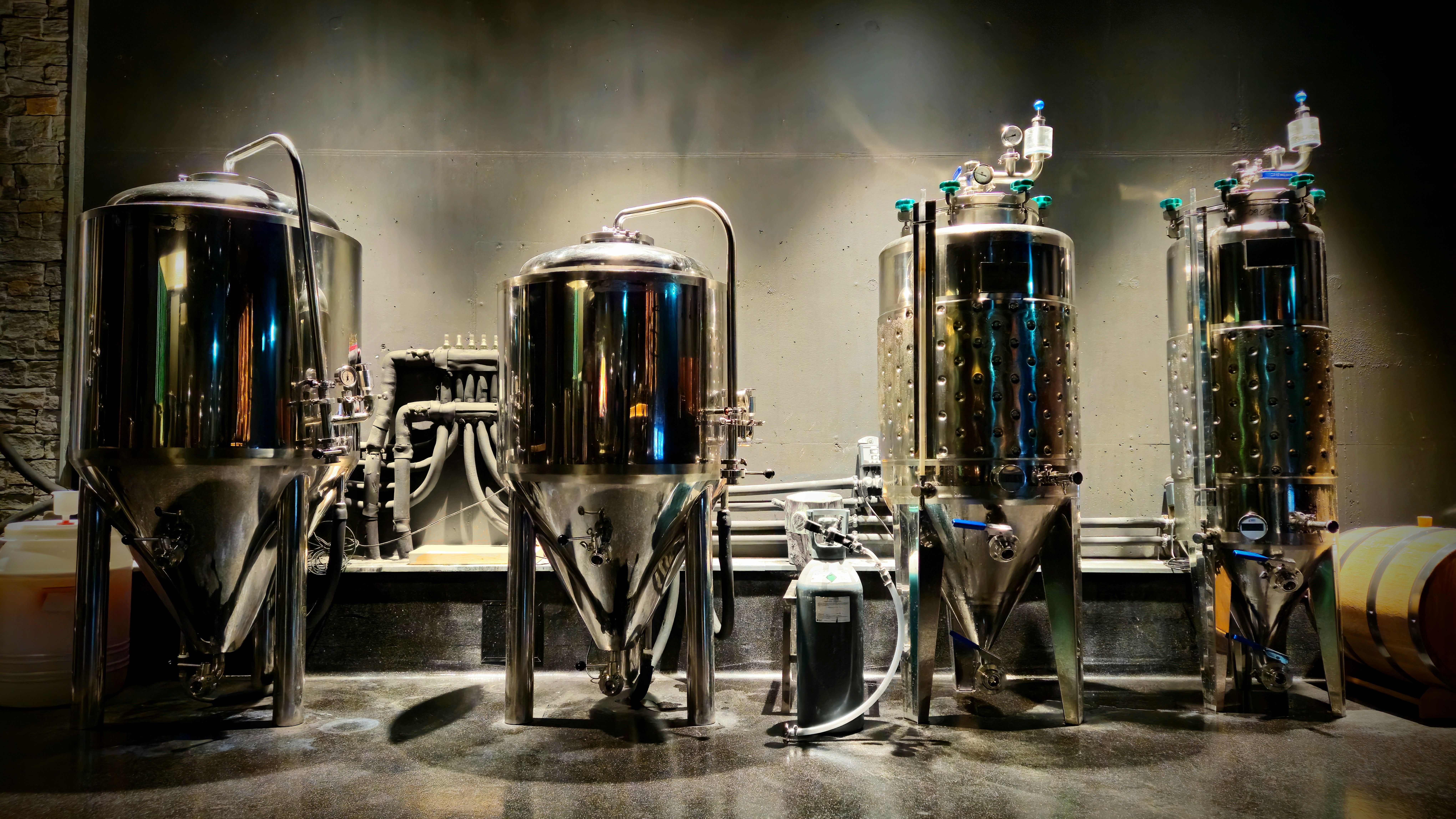 The brewery is located adjacent to the bar and event venue, separated only by a glass wall
