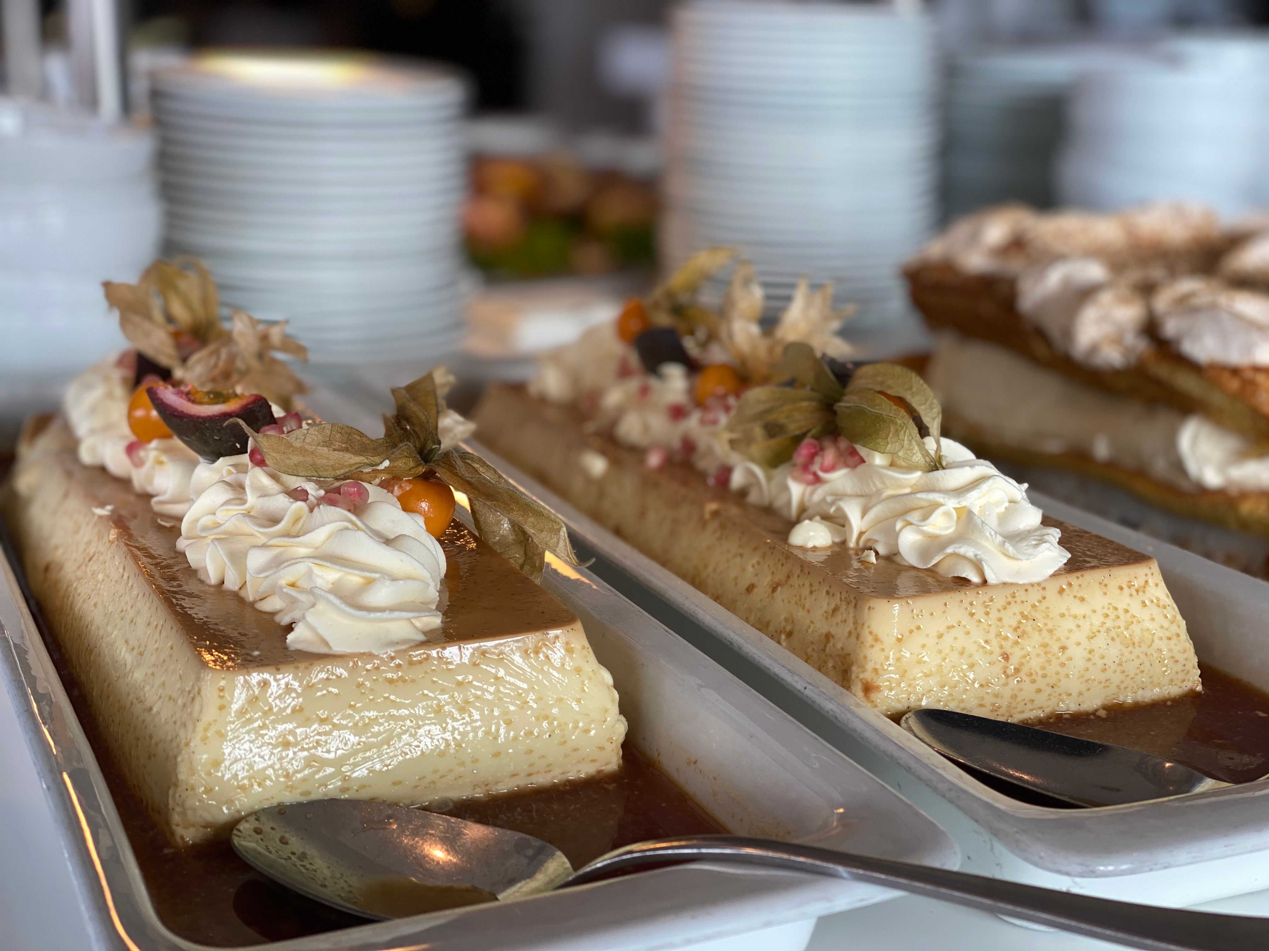 The dessert selection remains rich, featuring all cakes and desserts as specialties from the hotel's own bakery. Of course, you'll still find our signature dessert: Homemade caramel pudding.