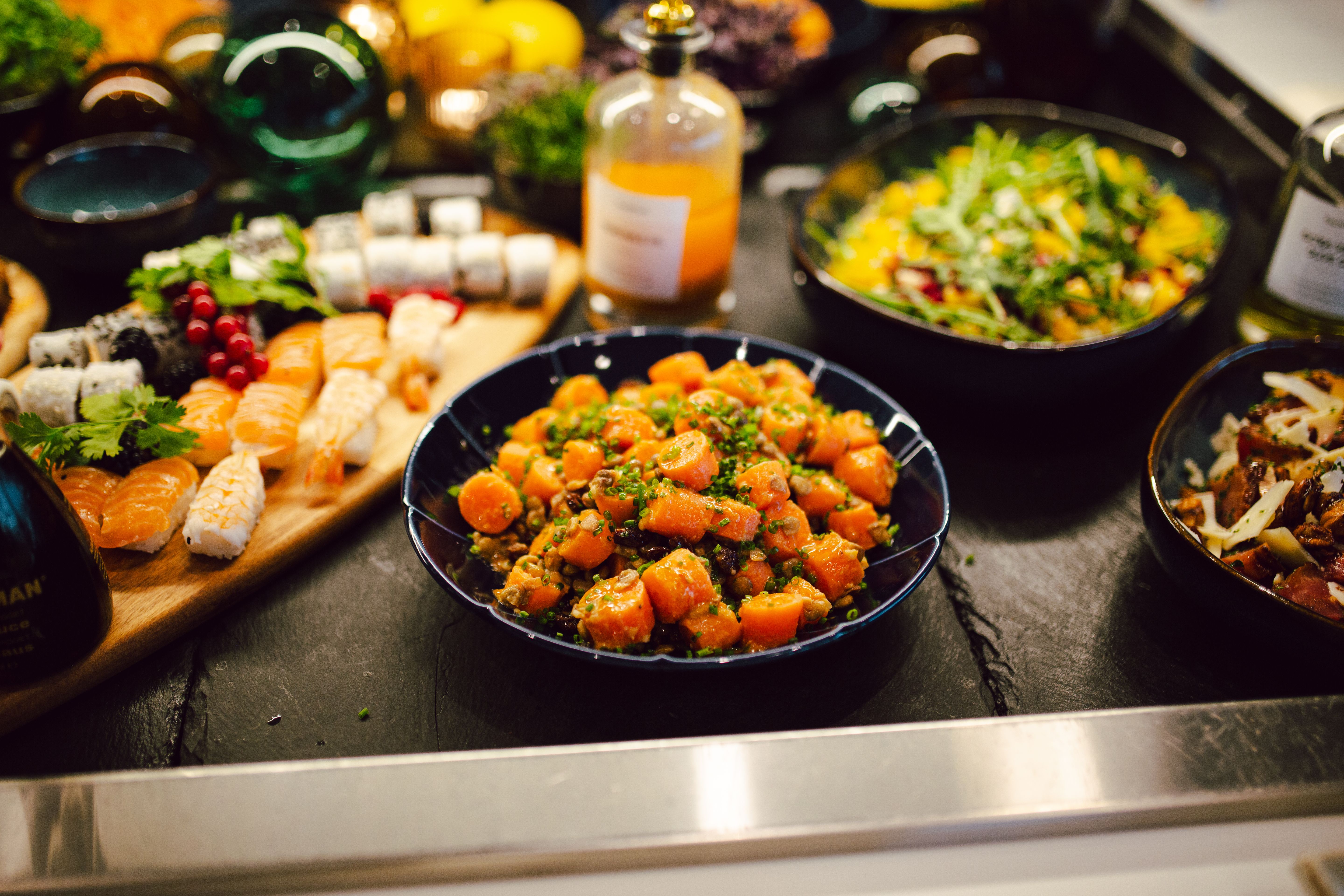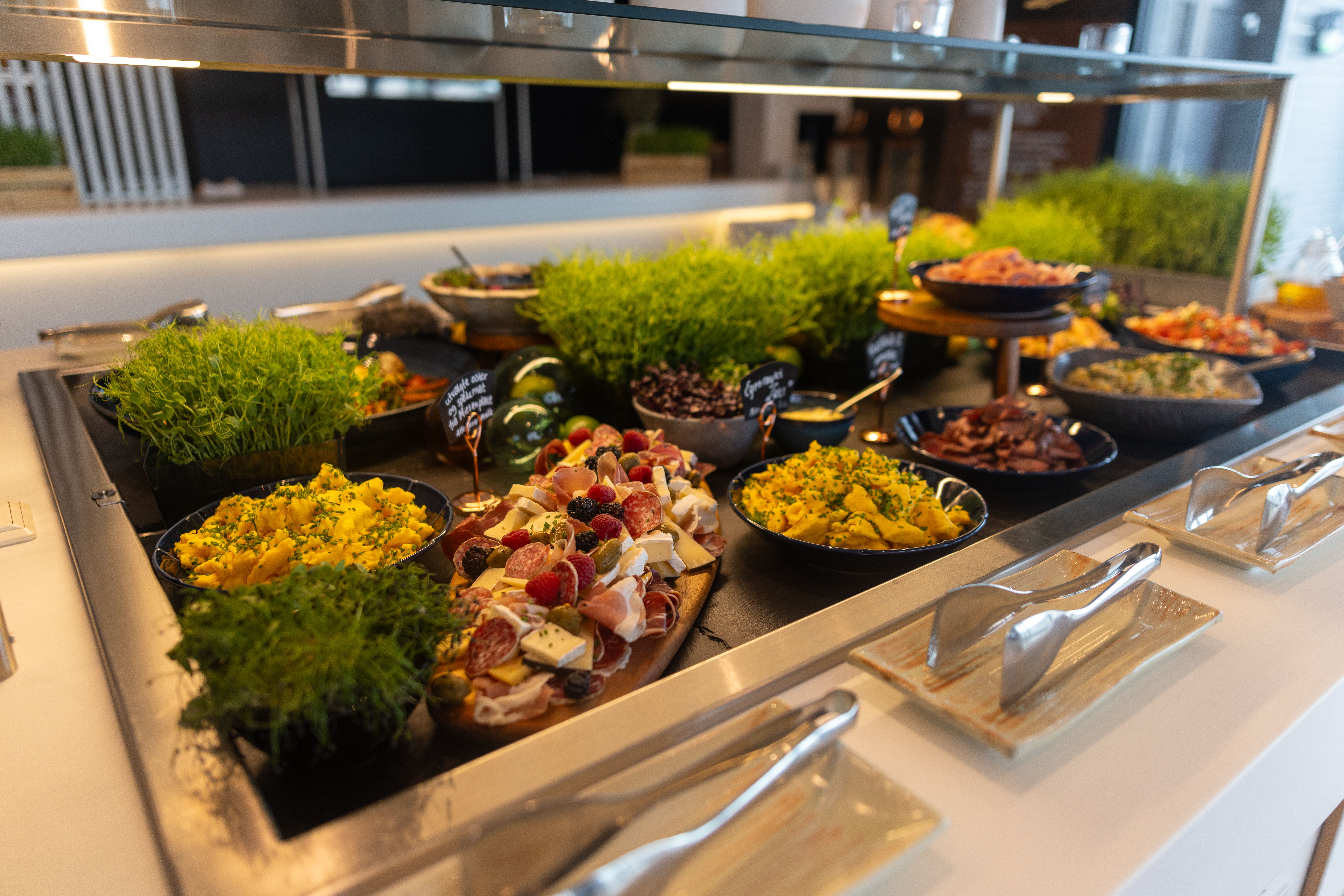 The cold buffet has received a new "look" that evokes associations with the sea and our beloved surroundings here. You'll still find the beloved classics such as the hotel's own cold-smoked salmon, hot-smoked pepper salmon from Sotra, smoked ham and fresh roast beef from Brakstad, freshly made scrambled eggs, and crab from Karmøy. We also offer exciting new additions and fresh, flavorful salads. (Several salads will be allergen-free and vegan-friendly.)
