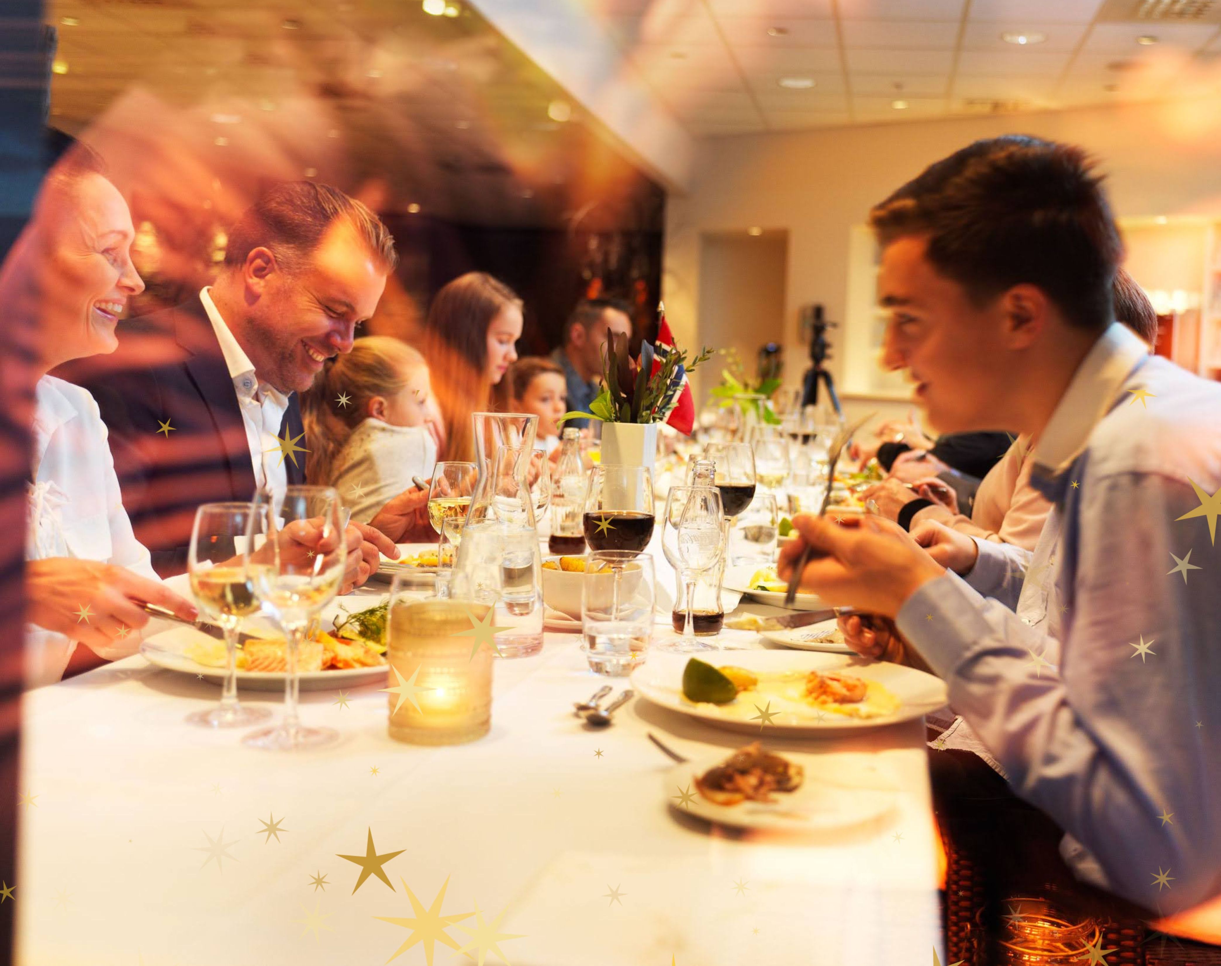 Vi inviterer til stemningsfulle familiejulebord. Den samme gode maten, den lune atmosfæren og et hotell pyntet til jul fra topp til tå.