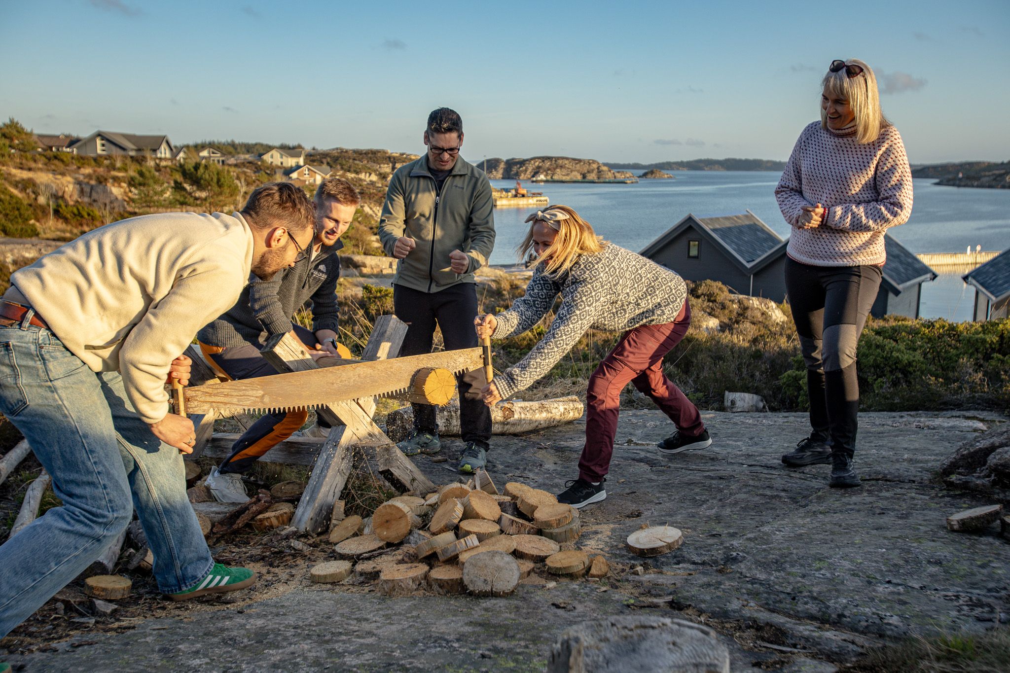 Dette er et rolig og sosialt øyeblikk der deltakerne kan senke skuldrene, mimre over dagens høydepunkter og nyte fellesskapet i vakker kystnatur ved sjøen.