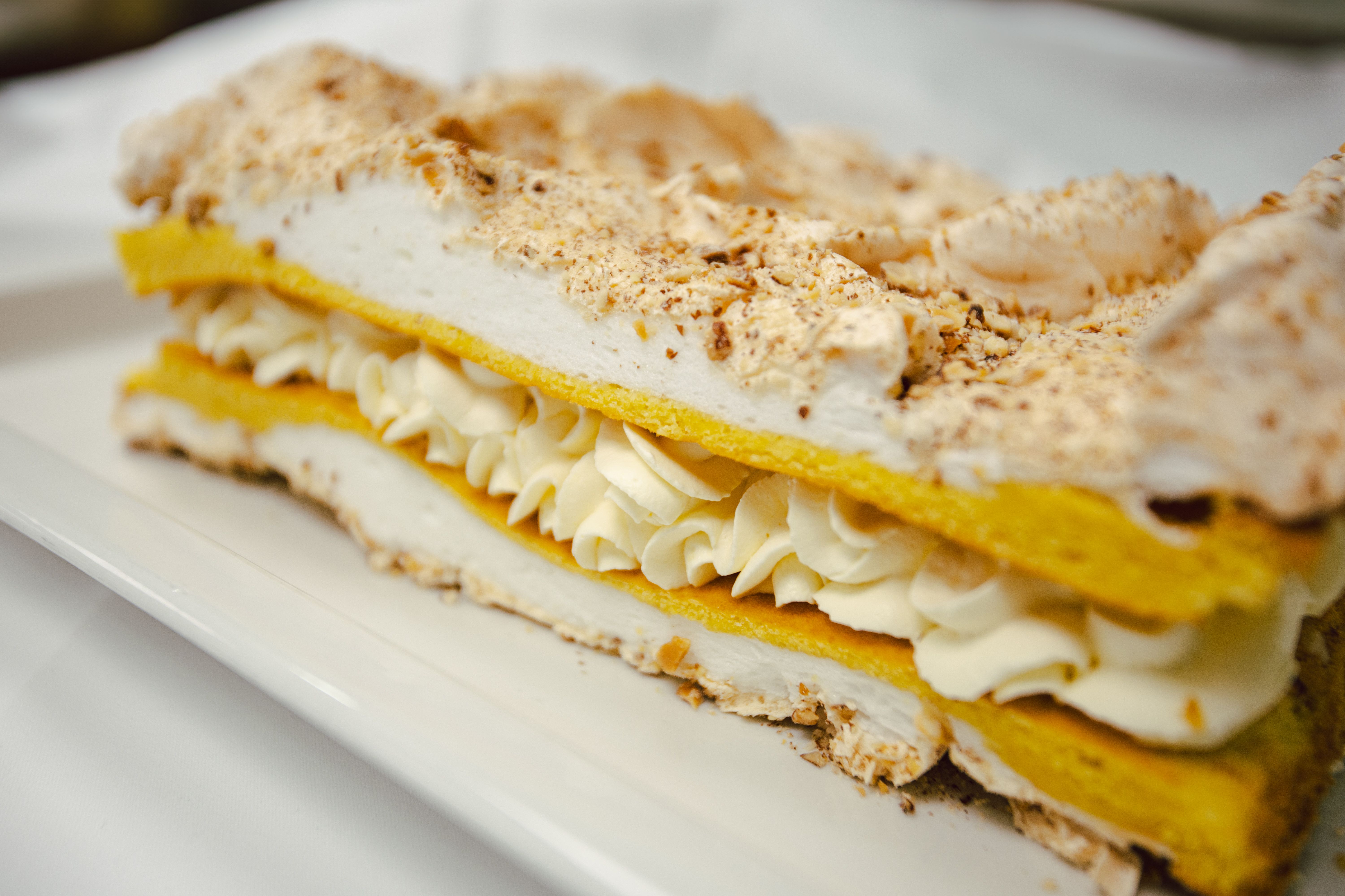 En klassiker med marengs, vaniljekrem og myk bunn.
