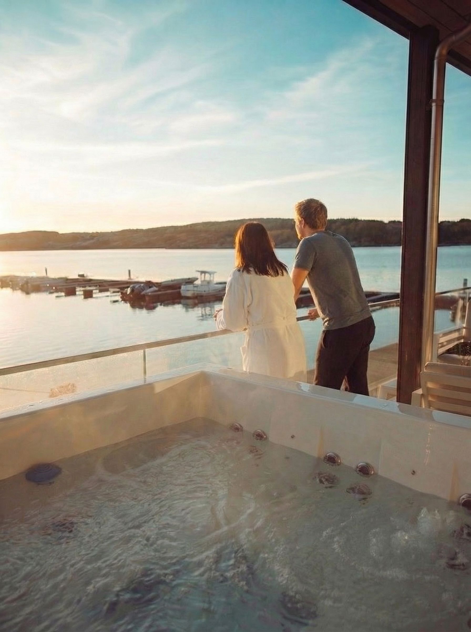 Trekk deg tilbake. Nyt kveldssolen, sjølivet og et varmt massasjebad fra egen terrasse.