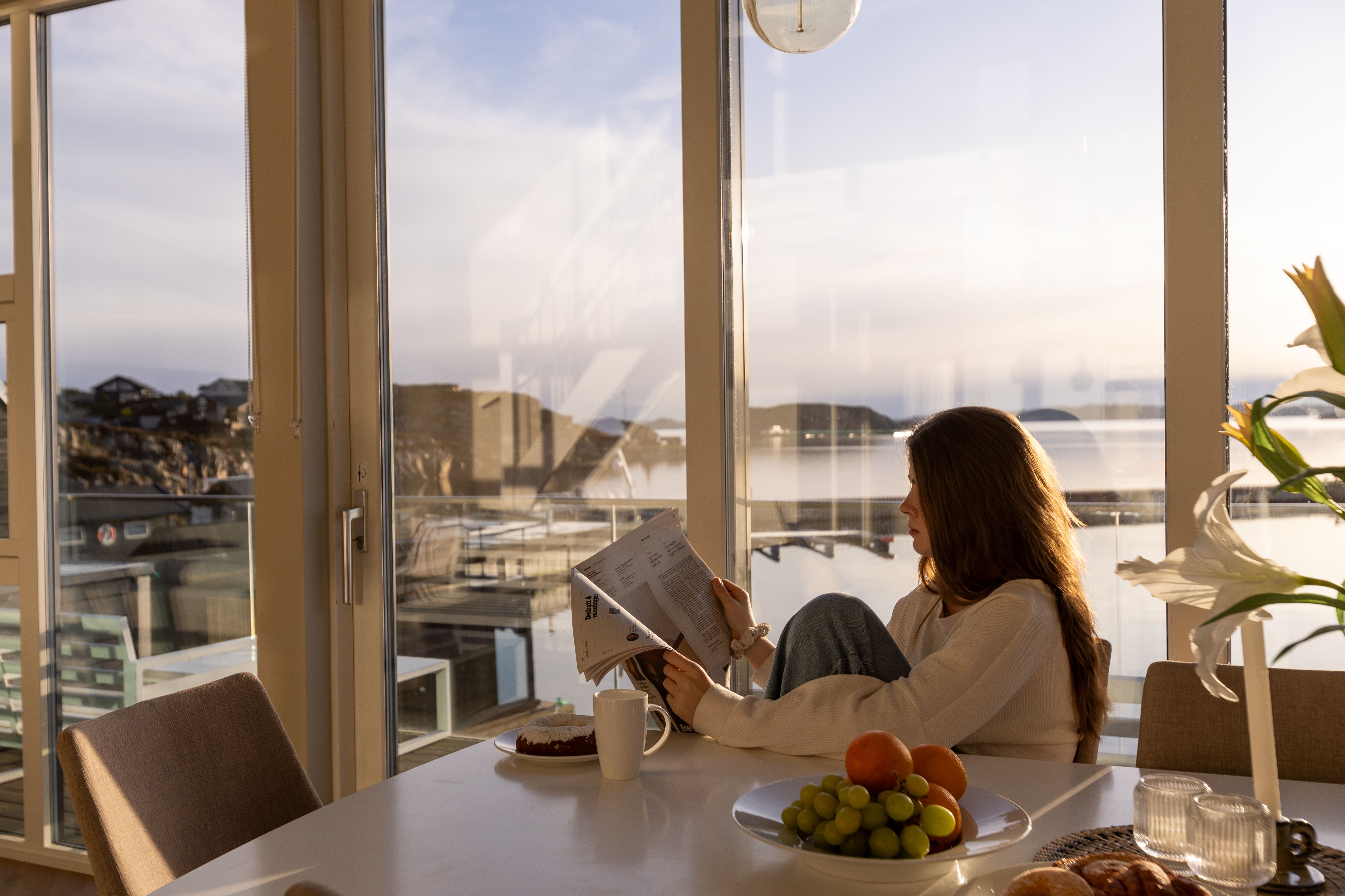 Disse leilighetene er romslige og har en uslåelig beliggenhet helt i sjøkanten! De rommer opp til 5 personer. 3 av rorbusuitene har eget boblebad på terassen.